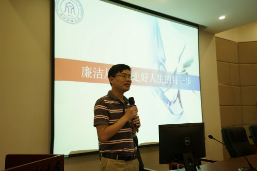 最后,团委书记陆建良以“廉洁从业,走好人生每一步”为主题,从预防职务犯罪须知、职务犯罪案例、职务犯罪心理分析为即将踏上就业岗位的毕业生党员敲响警 钟,并从把住“七道关口”、算好“七笔大账”,管住“七个部位”三方面给大家提出预防职务犯罪的建议,并坚定的表示“相信大家会成为一名合格的会计,一位优秀的员工!”(文:徐珊、徐也晴 摄影:洪涛 审稿:唐海艳)