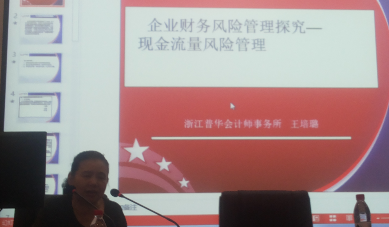 王培璐副所长报告从财务风险管理的概念、企业财务风险管理的四大内容、财务风险的管理程序、现金流量风险管理失败的案例等四个方面进行阐述。她认为,财务风险管理的最终目标是,正确识别与认定资产的经营和投资风险,建立和强化风险的防范、控制和补偿机制,经营风险、减少经营损失、提高经营质量。报告分析了三鹿集团、杭州油毛毡厂、摩托罗拉、浙江通策房产等案例,将理论与实际紧密结合,有利于开阔员工视野,对即将开展的财会信息化竞赛增训也有一定促进作用。