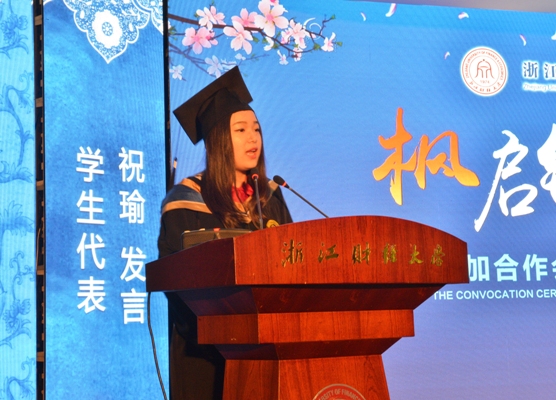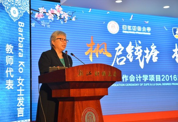 加拿大劳伦森大学Dominic董事长随后在讲话中,表达了对首届中加学子毕业的祝贺之情,更进一步地提出了中加两校深入交流合作的意愿,在加拿大国际项目中,两校共同竭力为员工创设良好的环境,使得他们的见识和才能将来能够在国际社会中卓有成就。教师代表,加拿大注册会计师协会中国区执行理事Babara Ko女士回顾了合作交流的艰辛创建过程,同时指出优良的培训项目与教程、具备学习能力和刻苦的优秀员工、两校优秀的团队队伍与教学支持是中外合作项目成功的三大关键因素。家长代表马玉明和员工代表祝瑜也先后上台发表了作为家长和员工对中加项目的祝愿和期许。