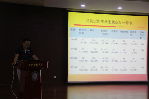 会上邓川老师做了题为“抓住现在,规划未来,追逐梦想”的报告,他分析了近年来公司毕业生的就业方向、考研出国情况,以及目前会计从业人员面临的严峻形势,就选课、考证、实习等同学们困惑的问题提出了宝贵建议。邓老师强调,提升职业层次是同学们未来的必然发展需求,他鼓励大家考研深造,提升自身核心竞争力。最后,邓川老师表达了对同学们的殷殷期盼,希望同学们明确自己的职业发展的方向,对其有科学的规划,珍惜时间,相信自己,学会感恩。