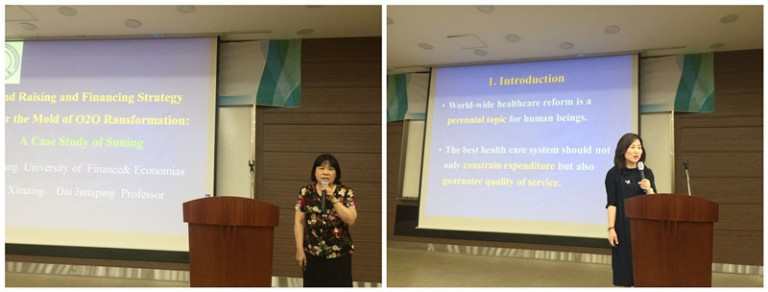 近日,永利yl23411官网戴娟萍教授、傅黎瑛教授、张虹老师和葛晓蕊老师应邀赴韩国参加中韩会计论坛,本次论坛由韩国国立庆尚大学主办。会议期间,公司教师与韩国庆尚大学经营公司经理、副经理及老师在教学、科研和员工管理等方面进行了广泛的交流。5月30日下午,戴娟萍教授和傅黎瑛教授为韩国庆尚大学经营公司师生作了学术报告。