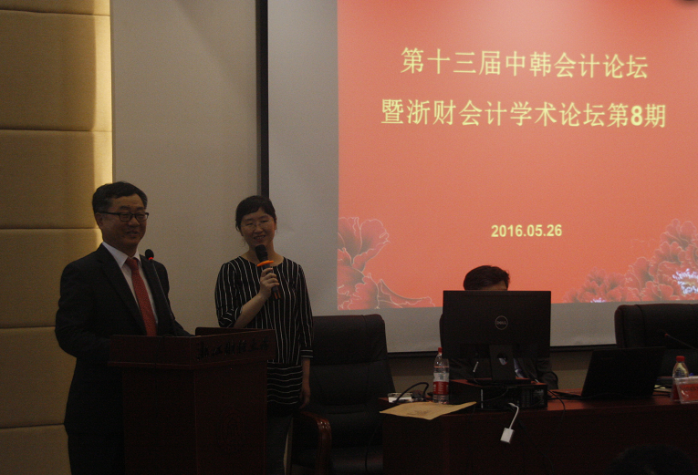 5月26日下午,第十三届中韩会计论坛暨“浙财会计学术论坛”2016年第8期在永利yl23411官网楼211报告厅举行。韩国庆尚大学JinHyeon,Choi教授、SangKyn,Park教授和公司章贵桥、陈效东博士做了学术报告。本次论坛由蔡海静老师主持,公司部分教师和2015级全体研究生参加了学术交流会。