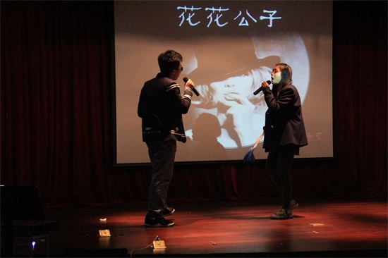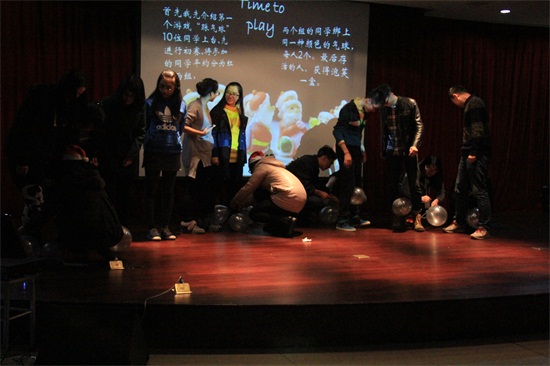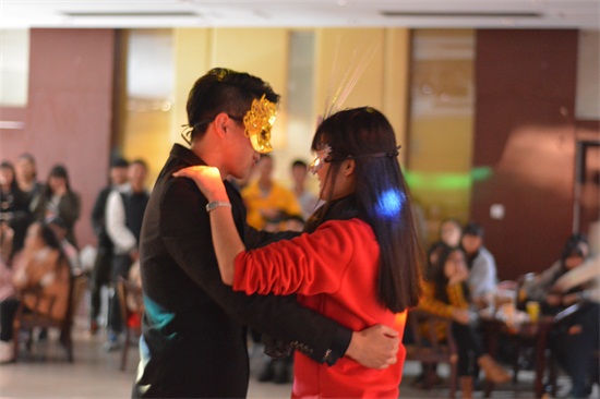 舞会期间,穿插了优秀诗作欣赏、富有韵律感和力量感的机械舞表演、尖叫不断的踩气球小游戏、活泼搞怪的《花花公子》联唱,同学们的欢声笑语萦绕在整个舞厅。舞蹈音乐时而欢快时而绵长,舞会中穿插的表演,更使得现场气氛逐渐高涨。最后,在朱老师的带动下,全场同学在音乐声中涌入舞池,跳起了最后一支舞。