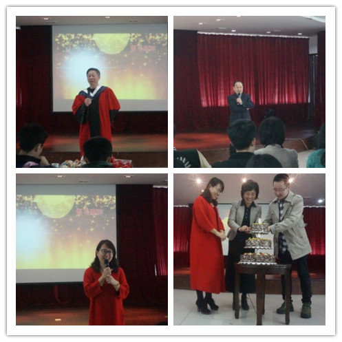 欢送会开始,汪祥耀、李连华、张红英三位导师分别上台致辞。导师们说,作为老师,在进校时会要求同学们要多学知识、多读著作、多写论文,潜心学习研究。现在,在大家即将离校之际,最后送给同学们三句话:好好工作,不论你即将去干什么都对它抱有激情,这样才能越做越好;好好生活,找到一个忠诚的伴侣,拥有可爱的孩子,家庭美满;保持联系,与老师们分享你成功的喜悦。同样的,张红英老师也表示:时光飞逝,当初同学们等待复试时候的紧张心情似乎还未平复,如今却已经满怀三年难舍的回忆即将迈出校门。她为大家这三年达到的成就而感到高兴,也希望大家不忘初心,心怀梦想而来,心怀希望而去。之后,由16届硕士毕业生代表徐超同学上台发言。徐超同学说,三年前你我互不相识,三年后师生情、同学义溢满胸膛,我们要感谢老师们三年的教导,同样也要感谢同学们三年的陪伴。毕业在即,愿大家都前程似锦,我们永远是浙财会院的一份子。最后,由张红英老师、邵毅平老师、徐超同学共同为16届硕士毕业生切分了欢送蛋糕。