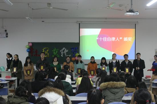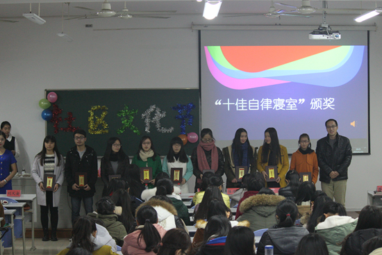 接下来的颁奖环节,依次进行了十佳自律人、十佳自律寝室、寝室美化大赛的颁奖并合影留念,并邀请了十佳自律人代表上来分享了他们学习生活的心得体会,为同学们提供了与优秀会计自律人及寝室互相交流、学习的机会。