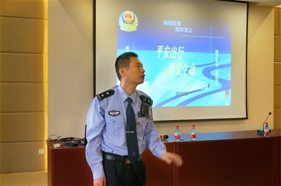 培训讲座上,董警官向老员工们从交通法基本知识普及、遇险时的正确做法、酒驾醉驾的危害、常见的安全隐患和违法行为等方面为同学们做了细致的讲解。让人揪心的交通事故实例视频结合生动的交规讲解,让在场的员工干部深刻地体会到自觉遵守交规的重要性。