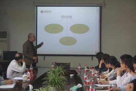 最 后,吴教授与现场教师进行交流互动,对大家提出的一些学术问题予以耐心的解答,还与大家一起分享了他的研究心得:在学术的探寻过程中,要沉淀下来。做研究 不要图大,要从细小入手,紧扣数据。对一些宏大的研究话题进行深入探讨虽然很有意义,但是没有数据的支撑,得出的结论就如同无根之树,是站不住脚的。此 外,吴老师还谈到他在来杭州的火车上对讲座PPT进行了修改和校对。吴老师对学术研究的严谨态度和高要求,使在场老师深受触动。