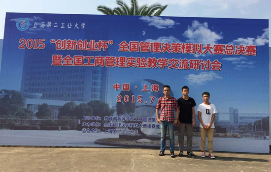 7月25日至28日,2015年全国管理决策模拟大赛总决赛在上海举行。由公司卓恒(12会计3班)、戴卓伟(12ACCA2班)、金融公司吴伟祥(13 金融4班)3位同学组成的“青年”代表队在ERP实验中心李晶、高行春老师的带领下,分工合理,配合默契,在总决赛96支代表队的激烈角逐中脱颖而出,勇 夺全国总决赛一等奖。