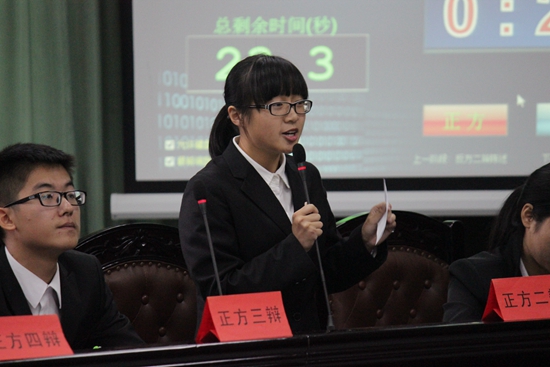 接下来是同样紧张而激烈的季军争夺战。该场的辩题是“互助精神和竞争精神哪个更重要”。正方审一审二代表队支持“竞争精神比互助精神更重要”的观点,而反方财三审三代表队认为互助精神更重要。双方辩手见解深刻,口才出色,赢得了台下观众的阵阵掌声。最后,审一审二代表队获得了胜利。