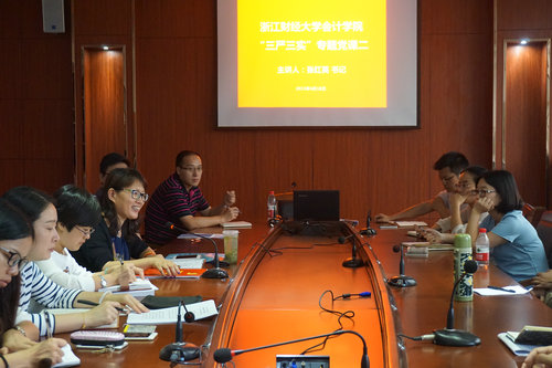 课上,张红英书记详细解读了“三严三实”24个 字,并从“三严三实”的来源、“三严三实”的丰富内涵和实践要求、“不严不实”的具体表现和危害、开展“三严三实”主题教育的重要意义等方面进行报告。她 特别强调,开展“三严三实”专题教育对于加强党员自身建设,全面推进从严治党具有十分重大意义。党员同志要结合工作实际,在教学和日常管理过程中,发现 “不严不实”行为,积极改进。