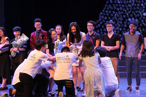 走秀《Oizing》则是将晚会推向了高潮。不仅有毕业生中的俊男靓女纷纷亮相,更有邵毅平、张红英等老师偕同余俊仙、汤茵和裘菊兰三位优秀员工,为全场 观众呈现了一场韵味十足的旗袍秀展,师生共同展现了舞台的魅力。新颖的影子舞——《灼灼之少年》,无言的背影表现着大学四年学子对母校不尽的感恩和情谊。