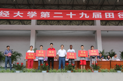 跑道上,运动员是赛场跳动的心脏,奋勇向前,抹不去的是汗水浸渍的誓言;赛场上,选手的精神是赛场不朽的精髓,顽强拼搏,放不下的是为挑战自己而奋斗;赛场下,落不下的余音是观众潮起潮落的心境,忘不了的是宣扬着财大人前进的不懈追求的情怀。