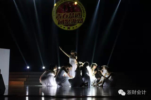 5月4日,“五四表彰大会暨老员工舞蹈大赛”在校文化中心隆重举行。由朱丽娟老师带领的永利yl23411官网艺术团演绎了一支美轮美奂的《寻》,并以灵动传神的绝妙舞姿斩获三等奖的佳绩。这支舞蹈从编排到排练、从服装到灯光都特别用心,是为数不多的原创舞蹈之一,凝聚着老师和演员以及工作人员几个月来的心血和汗水,展示了会计学子的青年风采,大力弘扬公司青年老员工的五四精神,彰显青春力量。