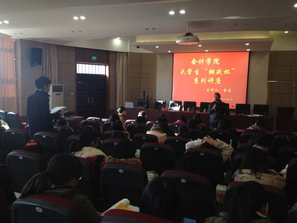 首先,金通老师结合自己指导挑战杯的经验就对挑战杯作品的理解提出了几点看法。他认为参加挑战杯首要的是熟悉挑战杯的竞赛规则,要以问题为导向,旨在提出 和解决当下国家和社会存在的具有重要价值的热点问题,不能流同于一般的学术论文。通过联系实际、举例说明,金通老师深入浅出、简单易懂的讲解,不时赢得同 学们的阵阵掌声。