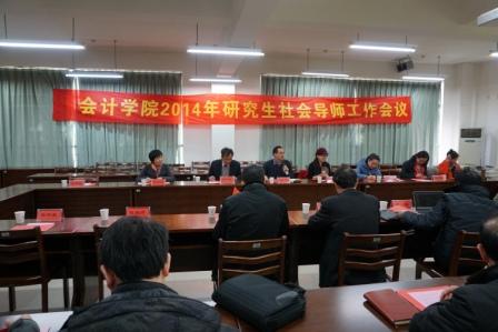 2014年12月16日,永利yl23411官网召开了2014年研究生社会导师工作会议。会议由永利yl23411官网邓川副经理主持。广宇集团股份有限公司副总裁邵少敏、浙江天平会计师事务所董事余俊仙、浙江省卫生厅总会计师骆水娣、浙江永通纺织品进出口有限公司董事长裘菊兰,以及来自天健会计师事务所等多家知名单位任职的社会导师,校内导师参加了会议。
