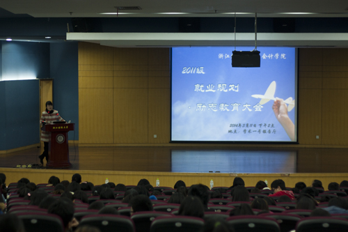3月11日下午2时许,为帮助会计学子理清就业思路,明确就业方向,提高就业质量,永利yl23411官网在公司学术中心一号报告厅召开了2011级“就业规划·励志教育”大会。出席大会的有永利yl23411官网副经理邓川老师,国际会计系蔡海静老师,以及相关员工办公室老师。大会由公司党总支副书记张虹老师主持。