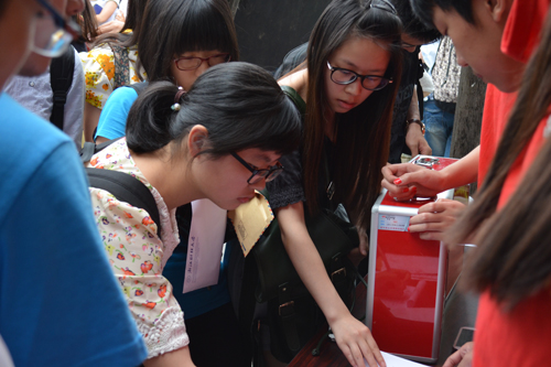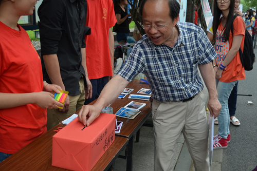 现场活动开始前,“助梦回家”、“筑亭汇爱”、“最暖指尖意”、“最浓同乡情”、“最美家乡景”等7个展位募捐箱前便已排起长龙,现场气氛十分热烈。同学和老师们积极捐款,点滴爱心汇聚成河。