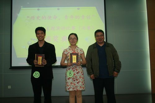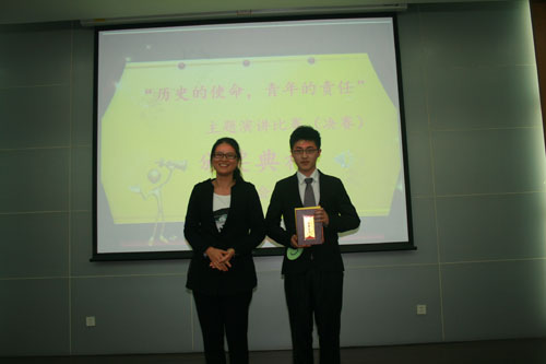 4月15日下午两点,由永利yl23411官网入口员工办和永利yl23411官网主办,永利yl23411官网马列学会承办的“历史的使命,青年的责任”核心价值观主题演讲比赛决赛在行政楼二楼报告厅隆重举行。永利yl23411官网入口党委宣传部副部长王晨曦,员工办副主任李晓峰和公司党总支副书记张虹老师出席并担任本次决赛评委。