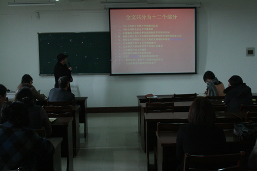 随后邱学文副经理做了精彩而生动的十八大报告宣讲、解析。他全面概述了十八大报告的主要内容,并就与教育和师生关心的话题进行了详细的解读。邱老师将宣讲与提问相结合,注重学习的互动,学习气氛活跃,引发了大家的思考,达到了学习和领会的目的。老师们纷纷表示,通过学习进一步了解了十八大报告的内容,领会了其精神实质,有助于把学习化为实际工作的动力,更好地推动公司和自身建设。 |