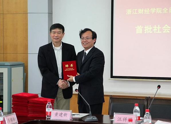黄建新副经理为浙江省会计学会秘书长蒋振成先生颁发聘书