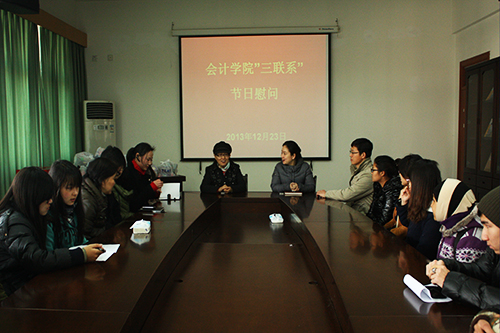 12月23日中午,永利yl23411官网在公司楼406会议室举行了“三联系”节日慰问活动, 为公司“三联系”员工和来自新疆等部分外省同学送上一份冬日温暖。张红英书记、于永生副经理、张虹副书记以及全体辅导员参加此次活动,会议由张虹老师主持。