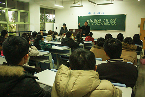 本科毕业何去何从?这里有一群人努力着奋斗着,有时奋笔疾书,有时伏案沉思,他们进入了考研的倒计时。在这紧张的 备考时期,永利yl23411官网老师为他们送上了一份温暖。12月17日下午在永利yl23411官网101举行了助考研送温暖活动,汪祥耀经理、张红英书记、张虹副书记、王敏老师 等一起为考研的学子助威加油。