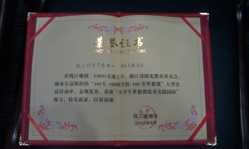同时,在钱江晚报联合FM93交通之声、浙江省阳光教育基金会、滴水公益组织的“100天·100所公司·100堂梦想课”大型公益活动中,员工爱心基金会赴淳安支教“彩虹心连心”实践服务团通过评比从22支团队里脱颖而出,获得“十佳团队”这一来之不易的奖项。“彩虹心连心”实践服务团在为期一周的时间里表现活跃,安排丰富,取得了累累硕果,赢得了一致的好评,得到了钱江晚报、浙江共青团、今日千岛湖等多家媒体的报道和高度赞扬。 |