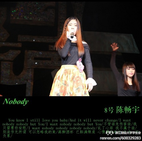以活泼动感的曲风和丰富的表现力给观众留下深刻印象的陈畅宇同学,将曾风靡一时的《Nobody》演绎出另一种少女的妩媚。