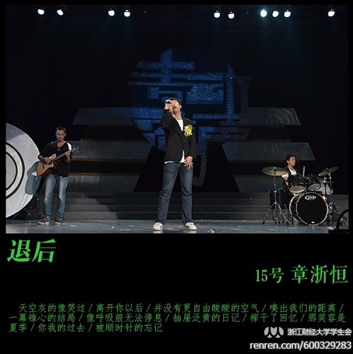 吉他与架子鼓的完美结合,伴着强烈的节奏感与音律感,章浙恒的《退后》让人意犹未尽。