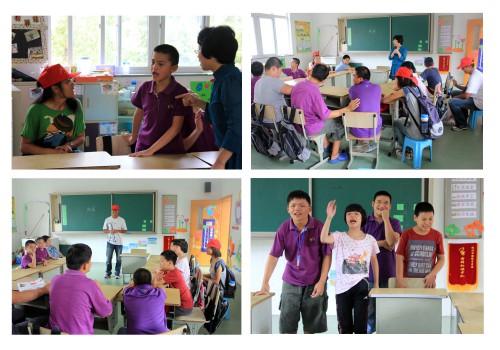 迈进杨绫子公司的大门,“健康”、“快乐”、“希望”三个大字映入眼帘,这也是志愿者们以及所有关心智障儿童的社会各界爱心人士对这些孩子的祝福与希望。 活动还没开始,很多孩子就很热情主动地与志愿者们打招呼,“哥哥姐姐好”,脸上洋溢着真诚无邪的笑容。这次和志愿者们一起提前庆祝中秋的是四年级二班的9名孩子。大家围坐成一圈,争先恐后地进行自我介绍。当志愿者自我介绍后,孩子们都会甜甜地齐声喊哥哥或姐姐。随后,大家各展才华的时候到了,孩子们个个生怀技艺,在荷塘月色伴奏下的三人舞蹈,课本剧表演小熊请客;志愿者们也不甘落后,双人舞、粉笔画,最精彩的是志愿者和孩子们一起合唱的儿歌《我是一个粉刷匠》。除了带去精彩的表演,志愿者们还为他们准备了丰富的中秋礼物,期间志愿者与孩子们近距离交流,拉近了彼此间距离。