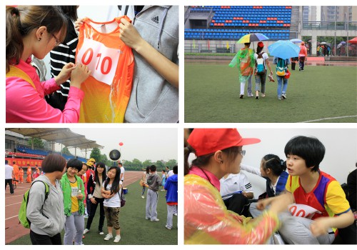 回到休息室后,志愿者们和运动员们坐下聊天,甚至打闹嬉戏。有不少家长陪同孩子前来参赛,从与家长交谈中,志愿者们了解到智障孩子的日常生活。 整个下午都飘着大雨,比赛仍冒雨进行。尽管天空不作美,但志愿者们的热情丝毫不减,风里来,雨里去。一名志愿者负责陪同一名运动员,不论运动员去哪,都必须全程陪同。在这样“一对一”的相处下,志愿者们和运动员们的距离更近了。同撑一把伞,一起面对比赛,共同分享成功的喜悦,有的志愿者还和运动员一起登上领奖台。 最后,志愿者们和运动员们留影纪念。临走时,那些孩子们不忘和志愿者们道别“哥哥姐姐再见”,两个调皮的男孩还跑来和志愿者们一一握手道别。