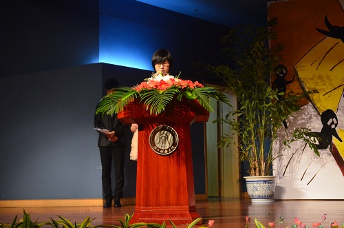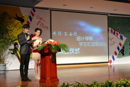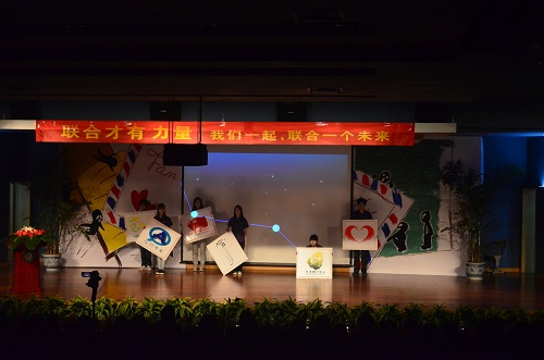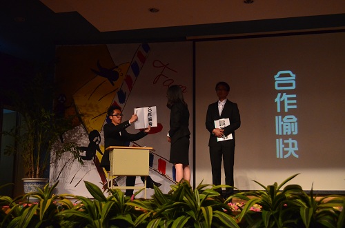 晚会以开场舞 “千红”拉开序幕,随着主持人的出场宣布,8个社团的会长高举会徽走上舞台,和3个部门的部长一道用手中的拼图拼成公司社团联合会的会徽,象征着永利yl23411官网8个社团和全体社团人的正式联合;接着,张红英老师和沈鑫泉老师共同为社团联合会的成立剪彩揭牌,并授予永利yl23411官网第一届员工社团联合会主席王执。王执代表第一届社联会发言,校社联副主席高远到会祝贺,公司党总支书记邵毅平教授代表公司做重要讲话。她在讲话中回顾了公司社团走过的25年历史,高度评价了公司社团发展取得的成绩,代表公司对为公司员工社团事业发做出努力和贡献的各位指导教师、社团骨干、会员和所有关心过社团成长的人表示了感谢,同时对员工社团联合会和公司员工社团的发展提出了三点希望。