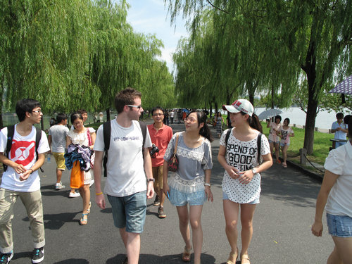 我们这一次英语户外实践的地点是美丽的西湖旁边。那里有很多国内外的游客还有很多本地的市民在西湖旁散步、游玩,观赏这美丽的风景。在这里,我们需要做的 就是用英语采访。我们以4个人为一个小组,每个小组都自己定义了一个话题,围绕这个话题我们设计了4到5个问题来问被采访者并且在采访的最后做出一个总 结。在采访时,我们会全程使用英语,用英语与游客们交流并拍下视频。