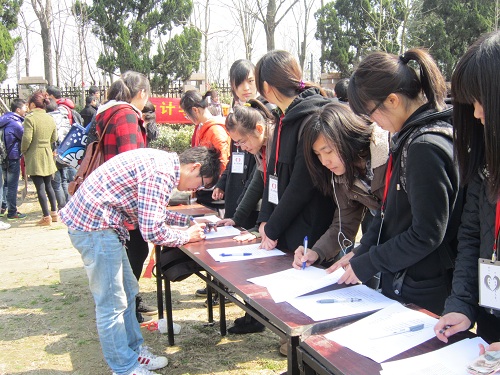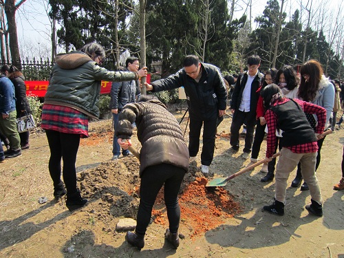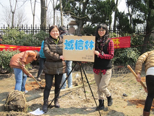 在活动正式开始前,举行了爱心林传承仪式,即将毕业的08级各班将去年认领的爱心树苗传给11级大一新生班,接过爱心接力棒。随后,植树活动在同学和老师们迫不及待的签字认领中开始,50多株诚信树苗早已被预定一空,不大的空地人头攒动。一位现场工作人员说道:“大家干劲都很足!原本安排的开场和到场嘉宾介绍只好两分钟就算过了!”植树活动在园艺师傅的指导有条不紊地展开——挖坑,放土,摆位,夯实,浇水,最后挂上认领牌。一步步程序下来,诚信林已初具规模。整个活动除吸引了永利yl23411官网各班级、社团、党支部、寝室等积极参与,还吸引了财政公司班级的热情加盟。