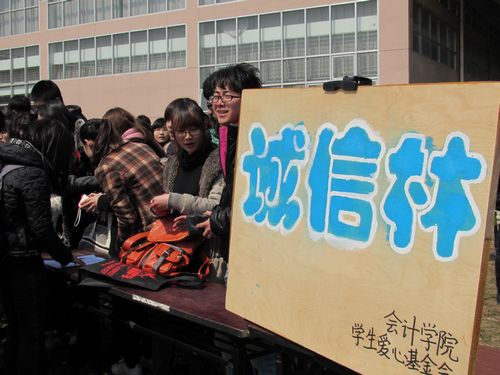 还记得去年植树节在爱心林中铲土浇水的身影吗?3月12日中午,由永利yl23411官网分团委主办、员工爱心基金会承办的“微诚信”系列之“信守爱心林”活动在东体育馆空地成功开展,四百多名师生共建诚信,传递爱心。