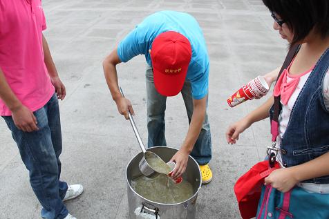 10审计2班的新生崔晓晨说:“真的没有想到能在结束拉练的第一时间喝到如此可口的绿豆汤,学长学姐们真是想得太周到了。这杯绿豆汤是我喝到过的最难忘的一杯,我记住它的不光光是因为它的好喝,更充满着对老师们和学长学姐们的深深感谢。我也会在军训中好好表现,积极向我们优秀的党组织靠拢。”