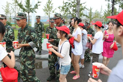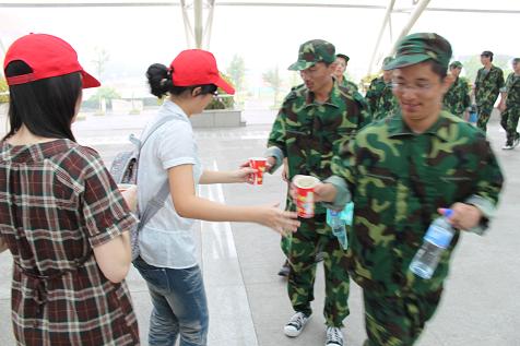 12日上午,永利yl23411官网各支部员工党员代表来到新生军训场地,为他们带去了早已准备好的绿豆汤。此时,正值新生们刚刚结束10公里的拉练返回,精疲力尽的他们在喝到冰凉可口的绿豆汤后,脸上充满了惬意的笑容和意外的惊喜。