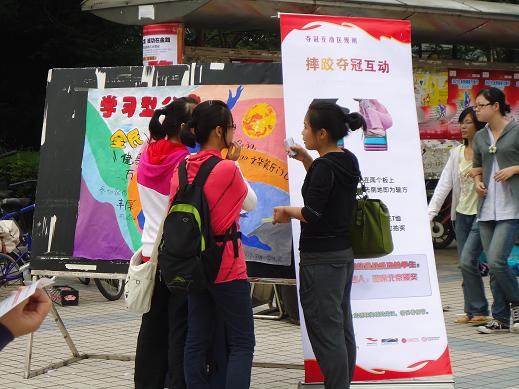 “想不想和刘翔一起跨栏?想不想和孔令辉打乒乓球?想不想与林丹打羽毛球?如果您想和奥运冠军切磋技艺,就千万不要走开!”伴随着动感音乐,主持人充满激情的演说拉开了本次活动的序幕同时点亮了青春飞扬的舞台。同学们纷纷积极报名,主动上台展现自我,争做健身达人。激情四射的走秀,挑战毅力的俯卧撑,强健有力的搏击操等表演一次又一次点燃了台下同学的热情,引来连绵不断的喝彩。