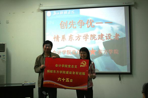 9月29日上午9时,以“创先争优,情系东方公司建设者”为主题的军服捐赠仪式在公司楼406教室正式开始。公司党总支副书记张红英老师、东方公司副经理盛百海、永利yl23411官网学办老师、东方公司建设工程负责人以及员工代表出席了本次捐赠仪式。