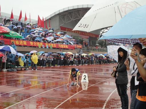 一瞬间的爆发,漂亮的冲刺,仿佛一阵风,孙佳迎在女子100比赛中力压群雄,以15秒61收冠军于囊中;在4*100接力中,男女选手们更是不负众望,均以第一的成绩为永利yl23411官网今日的径赛添上了浓墨重彩的亮丽一笔。同样,在第二天的赛程中,女子800米决赛,永利yl23411官网运动员都凯旋而归。吴星星、傅一丹、葛亚琦分别以2分54秒78、3分07秒46、3分09秒36包揽全校前八名中的第二名,第六名以及第七名。相应的男子800米决赛中,会计院选手王泽以其飞人般的素质一举摘下桂冠,下午进行的女子组200米决赛中,尽管雨势比上午更大,但运动员的速度并没有降低,比赛反而更具有刺激性与挑战力!会计院选手孙佳迎、张超红、姜烨在雨中奋勇拼搏,分别包揽了第一、第二和第七,在男子组200米决赛中,会计院选手同样发挥出色,其中俞少栋再一次斩获第一,王梓勋获得第四名的好成绩。整个运动会的压轴比赛就是在下午进行的男、女子组4*100米接力赛,永利yl23411官网派出顶尖级的选手参赛,最后在运动员们的努力下,男、女子组4*100米接力赛决赛双双获得冠军,为2010年永利yl23411官网的运动会画上了圆满的句号。