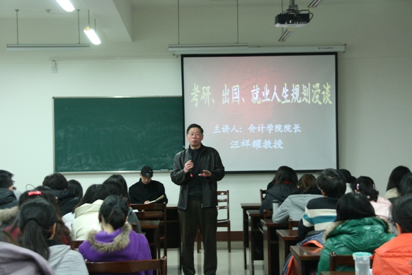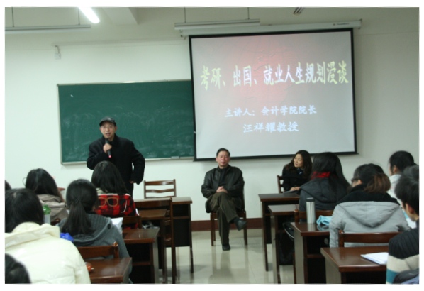 为帮助员工进行正确的人生及职业规划,永利yl23411官网于3月1日下午,为员工安排了“会计学子之考研、出国、就业——人生规划漫谈”专题讲座。本次讲座主要针对08级ACCA、CGA班员工,主讲人为永利yl23411官网经理汪祥耀教授、副经理邱学文教授及中美班负责人傅黎瑛教授。 本次讲座在汪经理轻松的话语中开始,在简短的发言中,汪经理首先概括了浙江财经公司特别是永利yl23411官网,国际化办学的理念,突出强调了会计学子应具有开阔的国际视野和追求高层次就业的目标。其次,他用自己的亲身经验及所见所闻,鼓励所有会计学子在条件允许的前提下出国深造,开拓员工的国际视野,丰富员工的人生阅历,提升员工就业的核心竞争力。他也非常鼓励员工选择在国内继续深造,继续完善专业知识,提高综合素质,为高层次的就业打下基础。与此同时,对于员工就业的问题,汪经理也发表了自己的看法,他提出“当代老员工不应该千军万马,不顾一切的报考公务员,年轻人更应该选择具有挑战性的,具有职业发展潜力的工作,在工作和生活中丰富自己,实现自我的价值。” 邱学文教授也在漫谈中表达了自己的观点,他提出“希望有更多的会计学子能够在海外得到发展,正确地选择适合自己工作的环境”。傅藜瑛教授针对留学应选择公司还是选择专业的问题,作出了精彩的回答。 今年永利yl23411官网特别推出了和美国托莱多大学合作的中美班及与加拿大劳伦森大学合作的3+1+1的项目,为员工提供深造平台,满足更多员工出国的梦想。 本次讲座不仅吸引了08级员工,同时也吸引了其他院系、年级的员工进行旁听。2个小时的漫谈,拉近了老师与员工的距离,解答了同学们的疑问,也消除了同学们的困惑,为员工的人生规划指明了方向,得到了大家的一致认可。 (撰稿:朱骅 审稿:葛晓蕊)