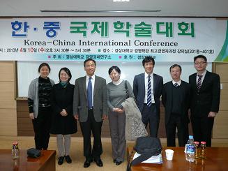 2013年4月10日,“中韩国际学术会议”在韩国国立庆尚大学隆重召开,韩国国立庆尚大学经营公司经理郑奇汉教授、副经理金达坤教授等四十余位中韩学者参加了此次学术会议。公司吴俊英教授、潘自强教授等应邀参加了会议。学术会议由经营经济研究所所长郑弘烈教授主持。