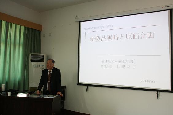 2011年3月7日下午,日本福井县立大学经济学部上总康行教授一行三人来公司进行交流访问。在拜访公司经理汪祥耀教授后,上总康行教授为公司教师和研究生做了题为“新产品战略与成本企划”的学术报告。报告会由永利yl23411官网副经理李连华教授主持。