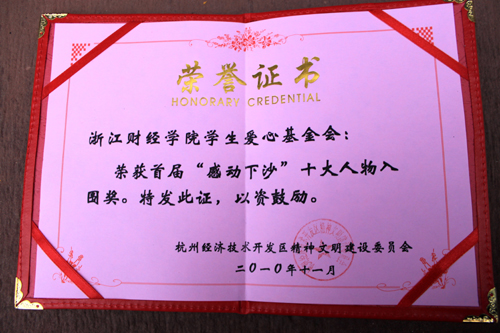 11月18日下午,由下沙开发区管委会和杭州电视台共同主办的2010“感动下沙”十大人物揭晓暨颁奖典礼在下沙城建文化馆隆重举行。公司员工爱心基金会榜上有名,成功入围。