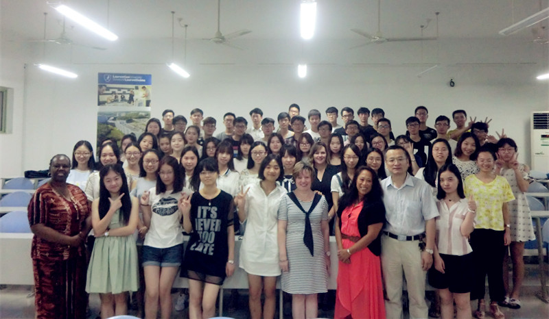 Shannon作为外教代表发言。她首先为同学们这段时间所取得的进步表示骄傲和高兴,她表示EAP所得到的分数并不能代表一切,同学们收获自信才是最重要的。在短短的六周时间内,共有17项作业,6个presentation,还有数不胜数的group work,在如此压力下,同学们依然表现优异,有理由为自己感到骄傲。随后,Shannon对同学们日复一日的努力和课堂上积极的配合表示感谢。她说不需要跟大家道别,因为很快就会在加拿大与大家见面。接下来,四位外教为顺利结业的同学颁发证书并合影留念。