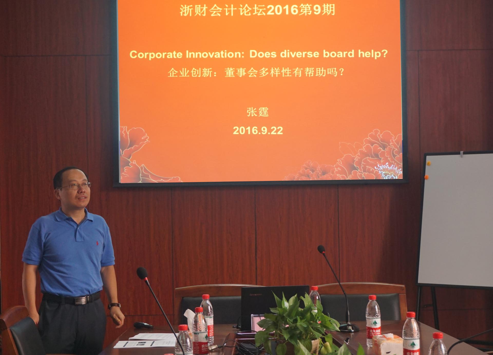 9月22日下午,“浙财会计学术论坛”2016年第9期学术活动在公司楼301报告厅举行。美国代顿大学张霆副教授给公司师生作了题为“Corporate Innovation: Does Diverse Board Matter”的讲座。邓川教授主持了这次讲座。