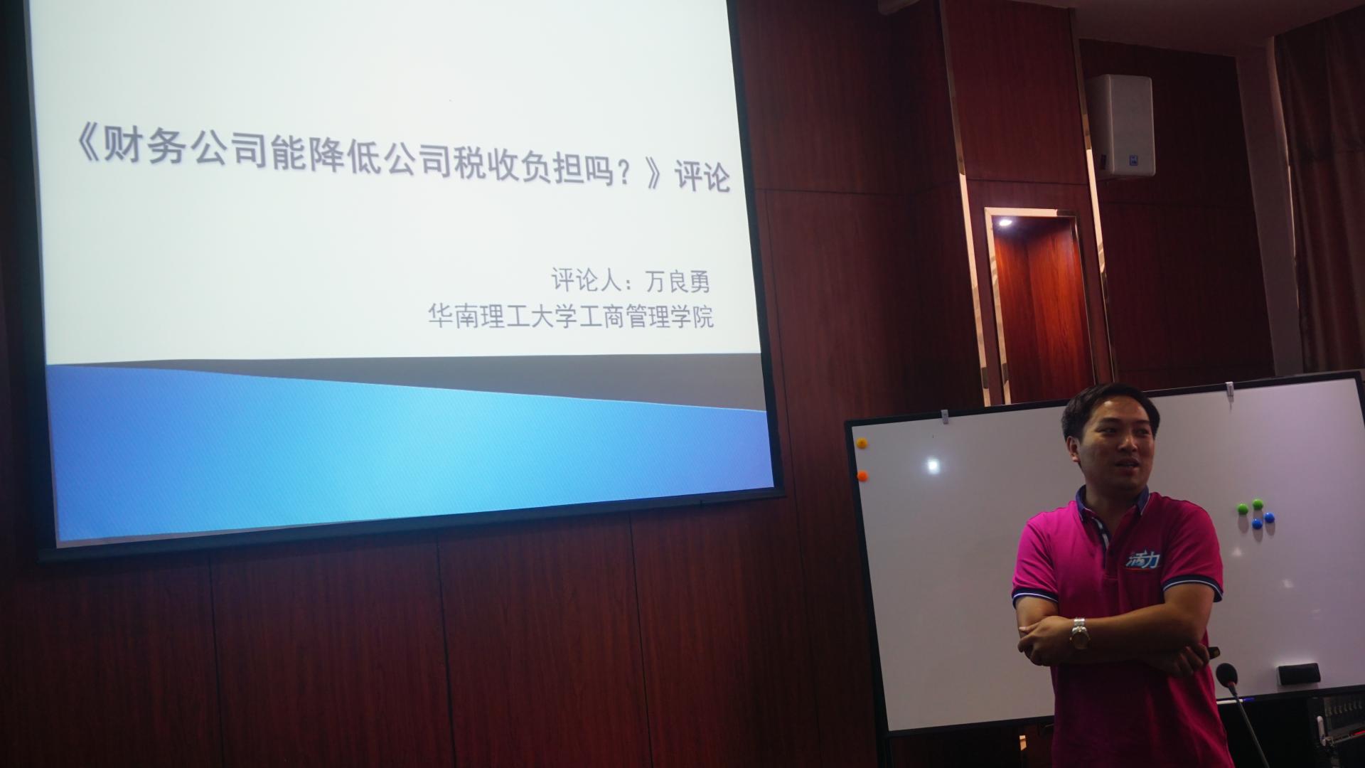 中南财经政法大学的刘继红博士作了题为“财务公司能降低公司税收负担吗?”的学术报告。刘老师对中美日韩印集团特点和纳税决策进行了比较,最后通过实证研究证实了财务公司能够降低公司税收负担的研究假设。华南理工大学的万良勇教授作了主点评。