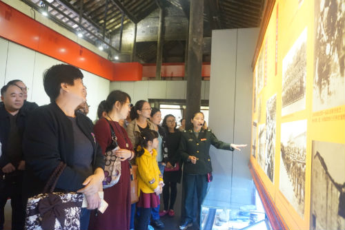 来到红村,老师们一边驻足观看革命纪念物品,一边用心聆听讲解员讲述抗日战争时期粟裕等老一辈革命先烈抗日杀敌的英雄伟绩,怀着崇敬的心情缅怀先烈、重温党的光辉历史。