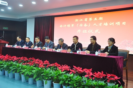 本网讯(通讯员 邓川)11月26日下午,由浙江省财政厅主办、公司永利yl23411官网承办的“浙江省第五期会计领军(后备)人才培训班”开班典礼在公司下沙校区隆重举行。来自省内财政、税务、审计、高校、医院等行政事业单位会计管理岗位的51位学员开始了他们为期三年的培训学习。省财政厅江中亮处长、中共浙江省委人才办张朝雄副主任、省人力社保厅程爽处长、董事长钟晓敏教授出席了本次典礼并讲话。