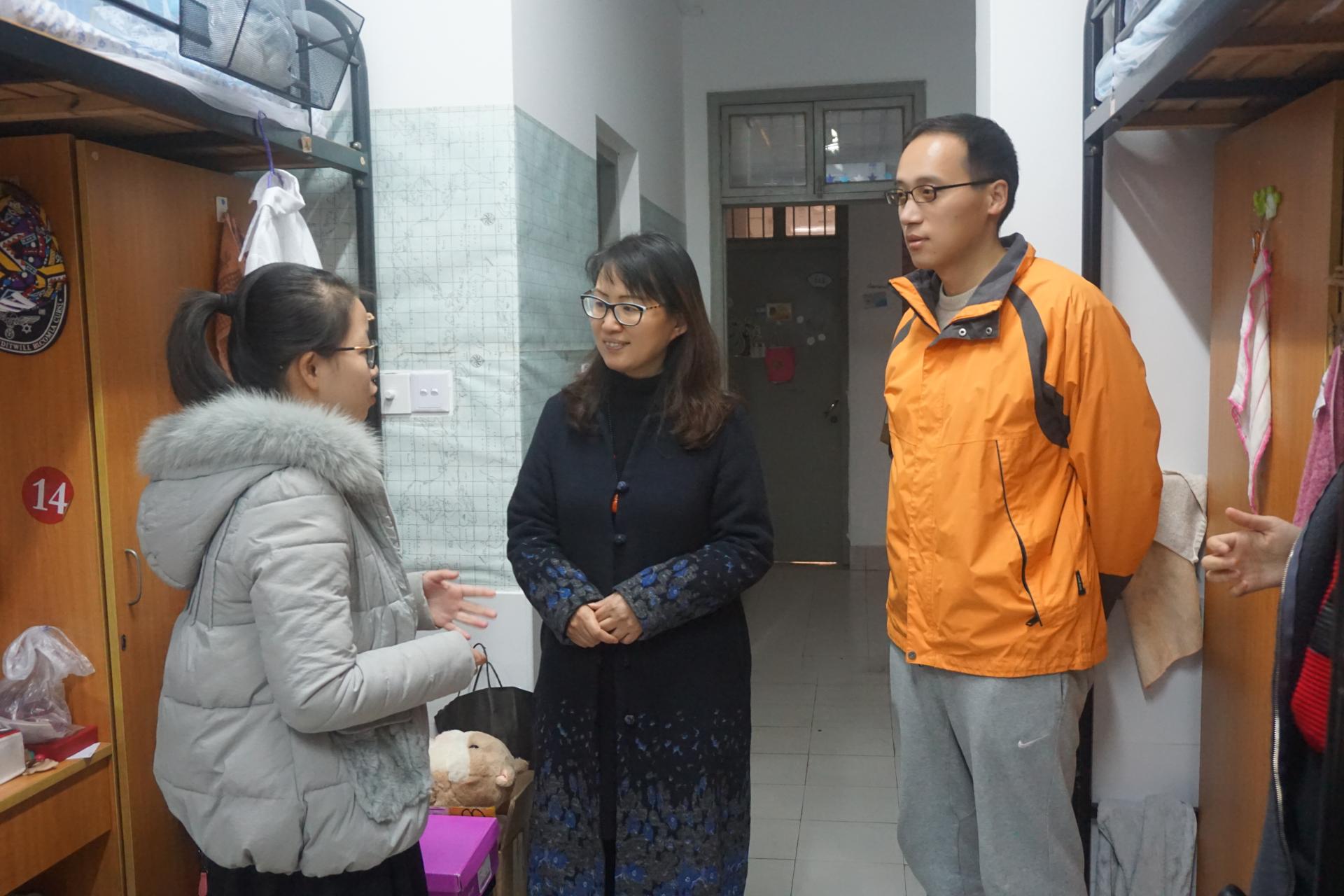 12月9日上午,公司党委书记张红英、院员工办主任王韵走进生活园区桃李苑10幢员工寝室,看望走访永利yl23411官网2015级员工,开展“联系员工班级、联系员工寝室、联系员工”工作。